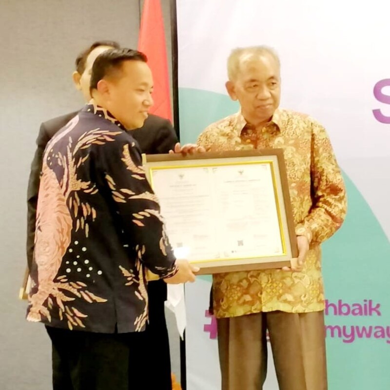 Proses penyerahan Sertifikat Akreditasi diserahkan langsung kepada Pimpinan Yayasan Global Halal Indonesia yaitu Bpk H. Syamsuddin.